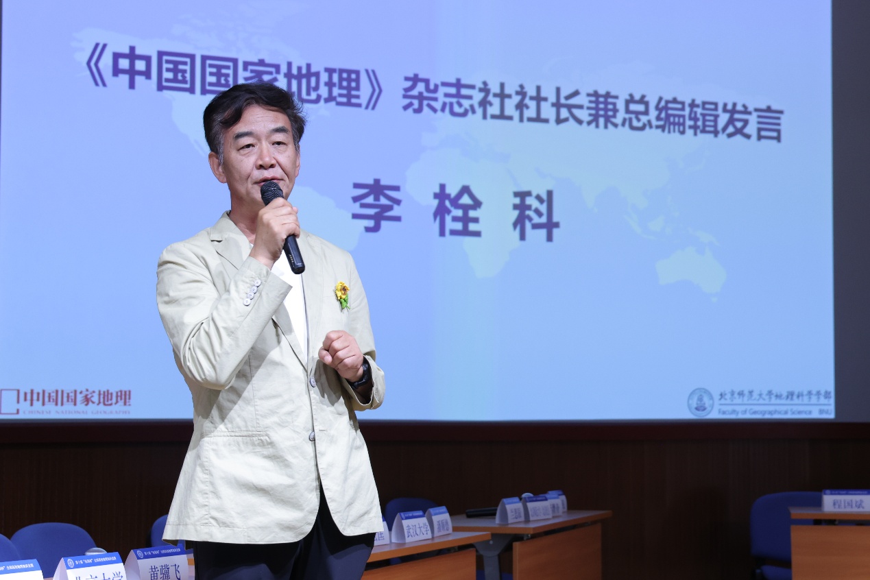 最后,《中国国家地理》杂志社的李栓科社长作总结发言,讲述了自己对于地理学的体会,为学弟学妹们送去谆谆教诲与美好祝福。李社长认为“地理学是平民化的科学”,这种平民化体现在与我们的日常生产息息相关,正如今天决赛的题目一样,地理学的综合性让我们着迷,地理学的差异性让我们充满好奇,希望在科技更加发达的未来,同学们可以看到、发现、记录和传播远超上一代人所能想象的地理。