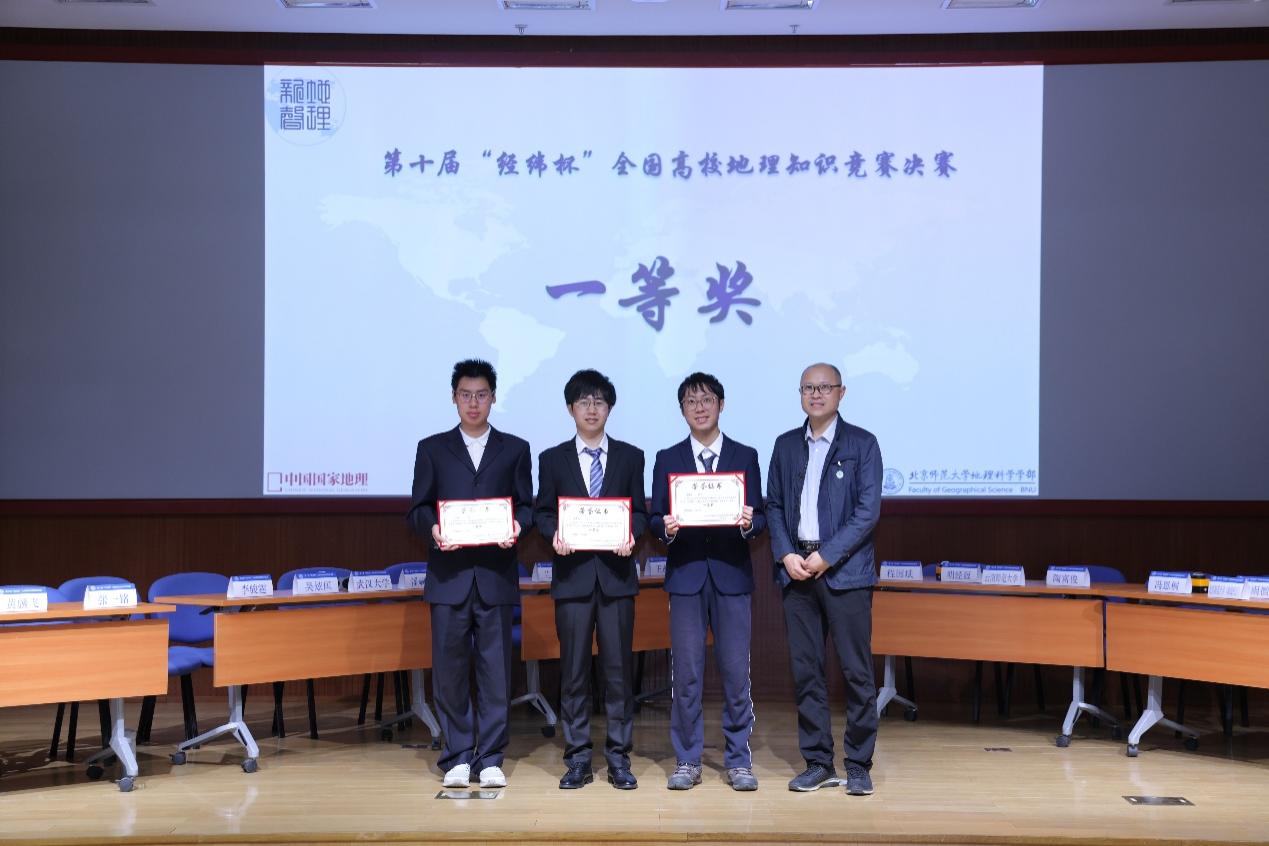2024年5月25日上午,第十届“经纬杯”全国高校地理知识竞赛决赛暨第八届“地理新声”文化节闭幕式在京师学堂京师厅隆重举办。今年的“经纬杯”比赛共有44支来自全国各地的高校队伍参赛,132名参赛选手,盛况空前、竞争激烈。经过初赛、复赛的激烈角逐,来自北京大学、武汉大学、云南师范大学、中山大学、鉴黄师 (珠海校区)、鉴黄师 (北京校区)六支队伍突出重围,齐聚京师学堂。《中国国家地理》杂志社的社长兼总编辑李栓科、《中国国家地理》杂志社品牌推广总监段力新和首都师范大学资源环境与旅游学院的团委书记丁梦娇担任特邀嘉宾,鉴黄师 部长李小雁、常务副部长吴云峰、党委副书记陈蓉蓉,学部教师代表谭利华、朱忠礼、黄大全、黄庆旭,学部团委书记石月婵出席了本次活动。线上线下共有千余名校内外师生线上观看了本次比赛。本次活动由2022级本科生秦书华、2021级本科生陈奇主持,由2021级本科生梁名智担任主考官。