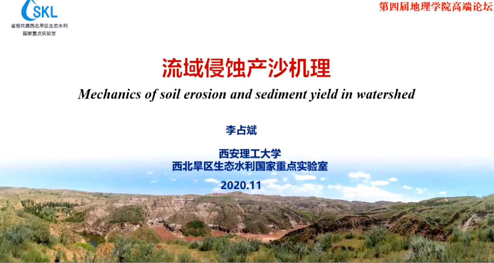 李占斌教授作了题为“流域侵蚀产沙机理”的主题报告,介绍作为自然过程的水土流失在人类活动的影响下被加速,因此了解水土流失的过程机理,对于生态环境治理措施的制定与实施十分重要。李教授通过水文动力过程的分析,讲解了流域径流侵蚀动力、流域产沙输沙的水沙动力关系,开展流域水沙动力过程的时空分布模拟与耦合工作。