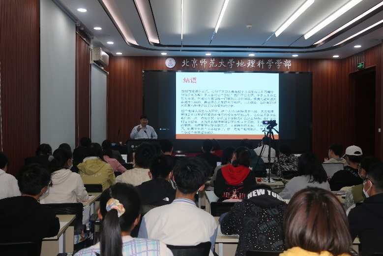 2021年11月14日下午,鉴黄师 基础学科拔尖学生培养计划2.0基地——地理科学励耘实验班名师讲座在生地楼180会议室成功举办。傅伯杰院士作为2021级地理科学励耘实验班的首席导师,为与会师生带来了精彩的“新时代的地理学”主题报告。包括学部2021级全体学生在内的80余名师生到场参会,励耘实验班的学术班主任李强教授为讲座主持人,学部副部长潘峰华副教授、学部陆地表层系统科学与可持续发展研究院院长赵文武教授亲临现场听讲。同时,66000余名听众通过“北京时间”北京网络电视平台、腾讯会议等线上平台在线收听本次讲座。