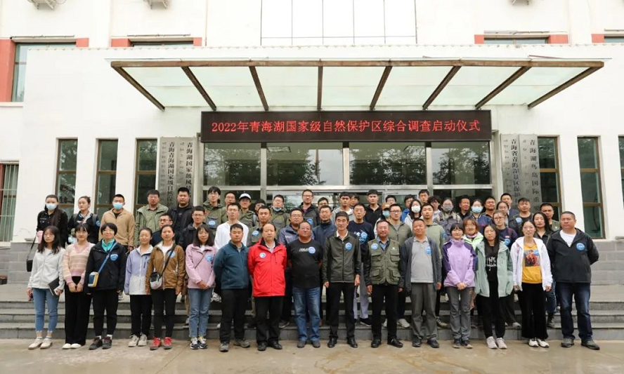“环青海湖流域生物多样性综合监测野外调查”小队在青海湖鸟岛实验站合影