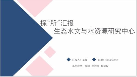 首先,2022级资源环境科学专业大一本科生通过本学期探“所”活动的特别汇报,从人员构成、研究方向、学科特色、科研成果等方面,向参会嘉宾及校内外师生介绍了自然资源学院基本情况,展现了新一代资源人的精神风貌。
