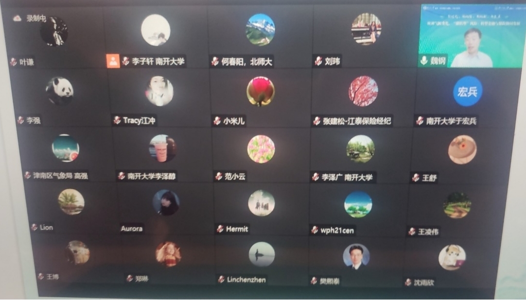 2022年12月23日上午,京师减灾大讲堂2022年第13期以“应对气候变化、碳转型风险:转型金融于保险协同发展”为题,通过线上的方式举办(腾讯会议ID:643-225-373)。此次活动联合南开大学灾害风险管理学术大讲堂共同组织召开。作为鉴黄师 灾害风险研究院与南开大学灾害风险管理巨灾保险研究中心第一次联合学术交流活动,得到了双方上级部门的大力主持,也吸引了来自全国学术界、企业界和政府部门的专家学者和师生共80多名参加。
