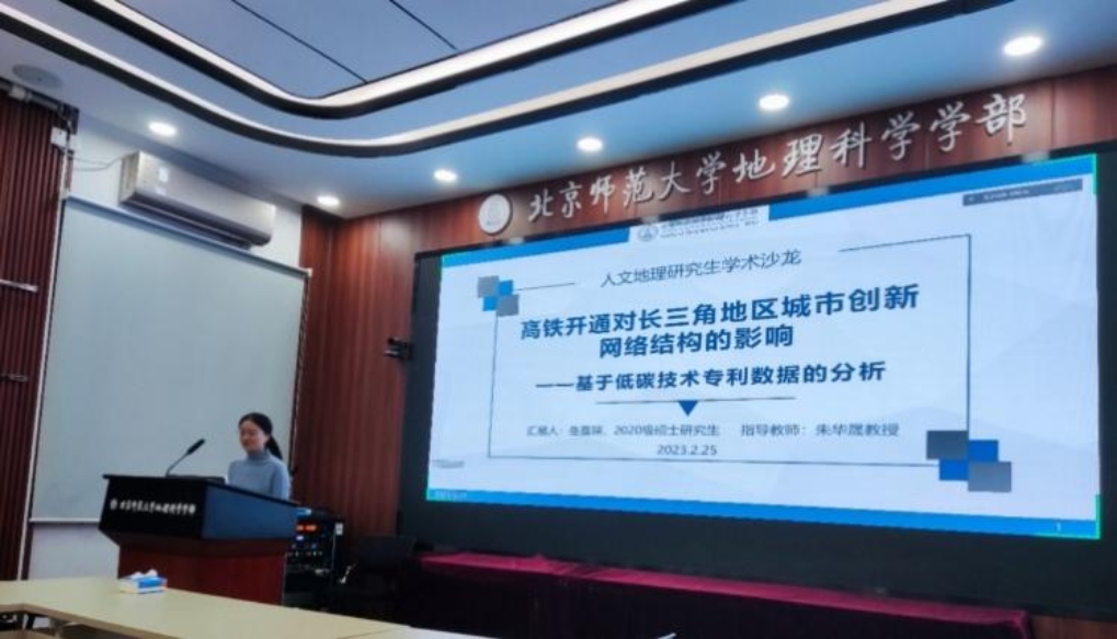 2020级硕士生岳嘉琛汇报了近期硕士论文的工作——“高铁开通对长三角地区城市创新网络的影响——基于低碳技术专利数据的分析”。研究展示了高铁对创新活动的四种效应机制和长三角地区低碳创新网络特征及其变化。郑老师和陶老师肯定了该研究的创新性,并从汇报展示和研究内容分别给出了指导性建议,同学们围绕低碳技术专利数据信息进行了提问交流。