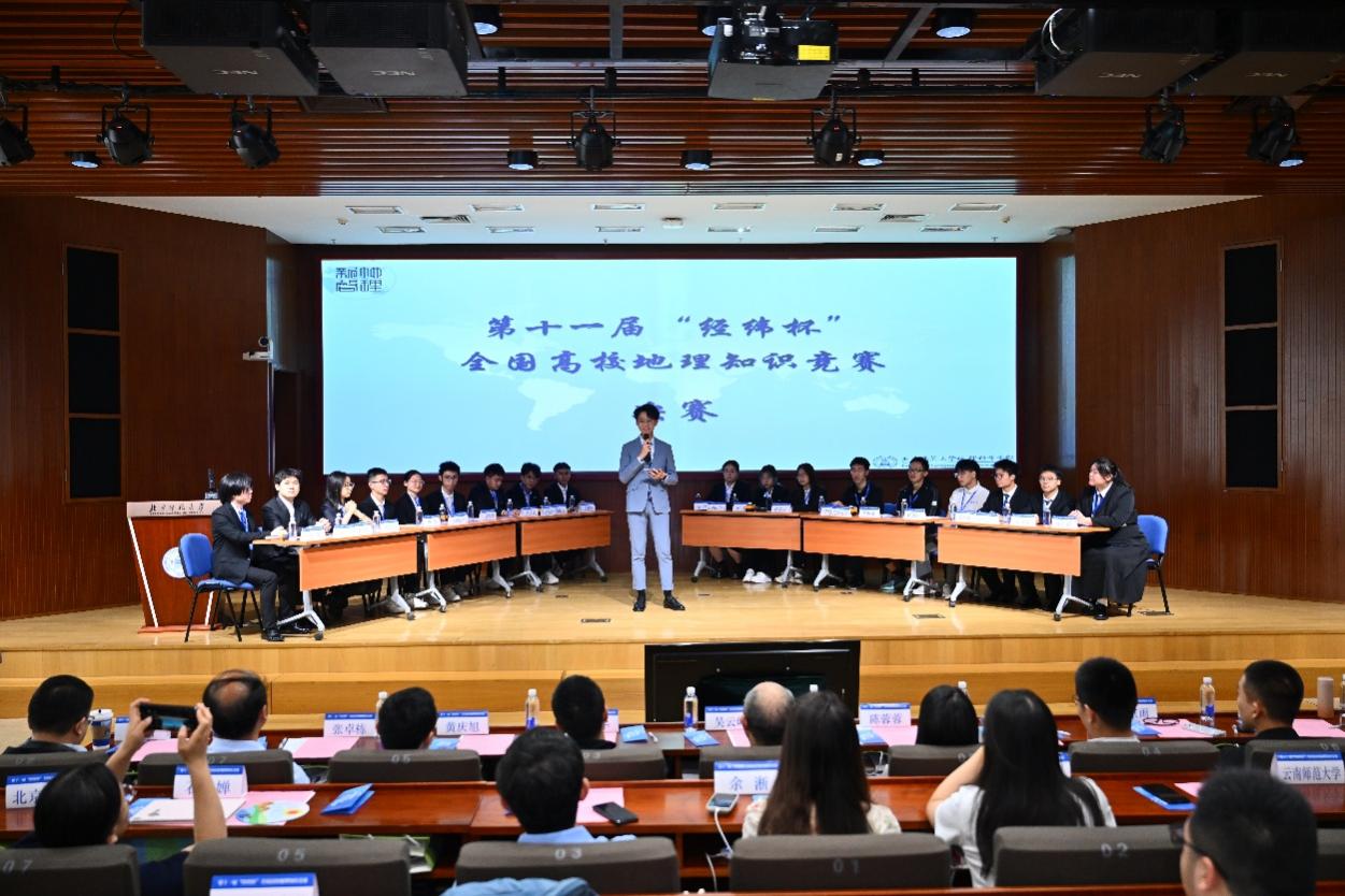 2025年5月17日上午9:00,第十一届“经纬杯”全国高校地理知识竞赛决赛在京师学堂京师厅隆重举办。今年的“经纬杯”比赛共有25支来自全国各地的高校队伍、75名选手参赛。经过初赛、复赛的激烈角逐,来自北京大学、鉴黄师 (北京校区)、滇池学院、泰山科技学院、武汉大学、云南师范大学六支队伍突出重围,齐聚京师学堂。鉴黄师 常务副部长吴云峰、副部长潘峰华、党委副书记陈蓉蓉,学部教师代表张卓栋、黄庆旭、沈石,学部团委书记石月婵、辅导员余淅、李冀出席了本次活动。线上线下千余名校内外师生观看比赛。本次活动由2024级本科生刘宇轩、2023级本科生何畅主持,由2021级本科生梁名智担任主考官。