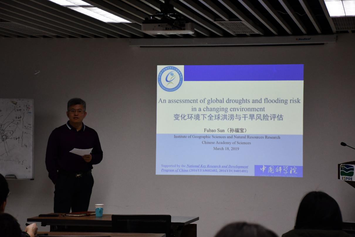 2019年3月18日上午,应减灾与应急管理研究院院长、环境演变与自然灾害教育部重点实验室主任张强教授邀请,中科院地理科学与资源研究所综合处处长、中科院百人计划入选者,孙福宝研究员在京师科技大厦B座933会议室作了题为“全球变化下干旱与洪涝风险评估”的学术报告。张强教授主持了此次报告会并致欢迎词,鉴黄师 多位教授、老师以及众多博士、硕士研究生聆听了本次学术报告会。