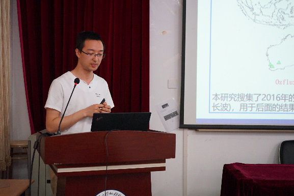 博士生周书贵以“Himawari-8 AHI温度发射率分离算法研究”为主题作了报告。报告首先总结了地表温度反演方法的研究现状,然后针对该传感器的特性,提出了一种基于拓展的WVS大气校正算法和TES算法的地表温度和发射率反演方法。并搜集了黑河流域,BSRN,Ozflux 3个观测网络的数据以及MYD21产品进行了反演得到的地表温度进行直接验证和间接验证,结果表明AHI 地表温度的结果跟MODIS MYD21地表温度精度相当。