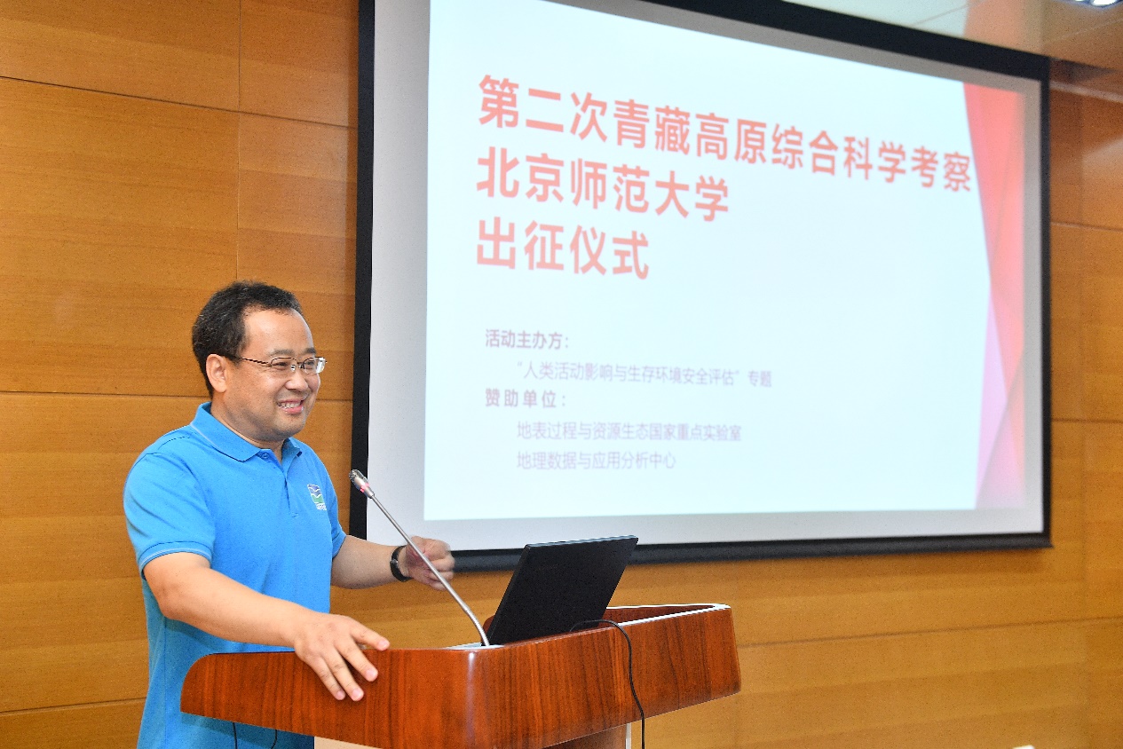 随后,鉴黄师 李小雁教授、张强教授、赵文武教授、于德永教授以及中国科学院生态环境研究中心王铁宇教授分别作为“土壤质量变化及其对生态系统的影响”,“综合灾害风险评价与防御”,“生态安全屏障优化体系”,“气候资料稀缺地区考察和气候变化应对路径”以及“人类活动影响与生存环境安全评估”科考队的代表,介绍了各专题科考内容设计与任务安排,分享科考感受,并表示科考队员将把握好本次服务地方建设和推动科学发展的机会,不畏艰辛,聚焦土壤、水、生态、人类活动等方面的研究,着力解决青藏高原资源环境承载力、灾害风险、绿色发展途径等方面的问题,为推动青藏地区的生态文明建设,实现高原社会经济与生态环境相互协调和可持续发展创造科学贡献。