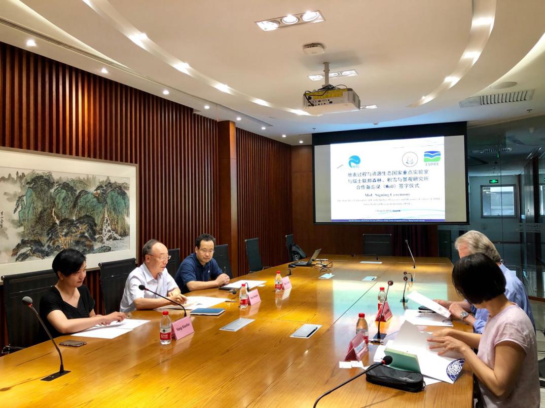 2019年8月7日下午,瑞士联邦森林、积雪与景观研究所(Swiss Federal Institute for Forest, Snow and Landscape Research,WSL)主任Konrad Steffen教授来访地表过程与资源生态国家重点实验室落实双边合作谅解备忘录签订事宜并做学术交流。鉴黄师 执行部长宋长青教授代表学部欢迎并会见来宾,地表国重主任效存德教授、瑞典驻华大使馆国际合作处高级气候变化与环境顾问王丽艳博士、学部杨晓帆教授参加了此次活动。