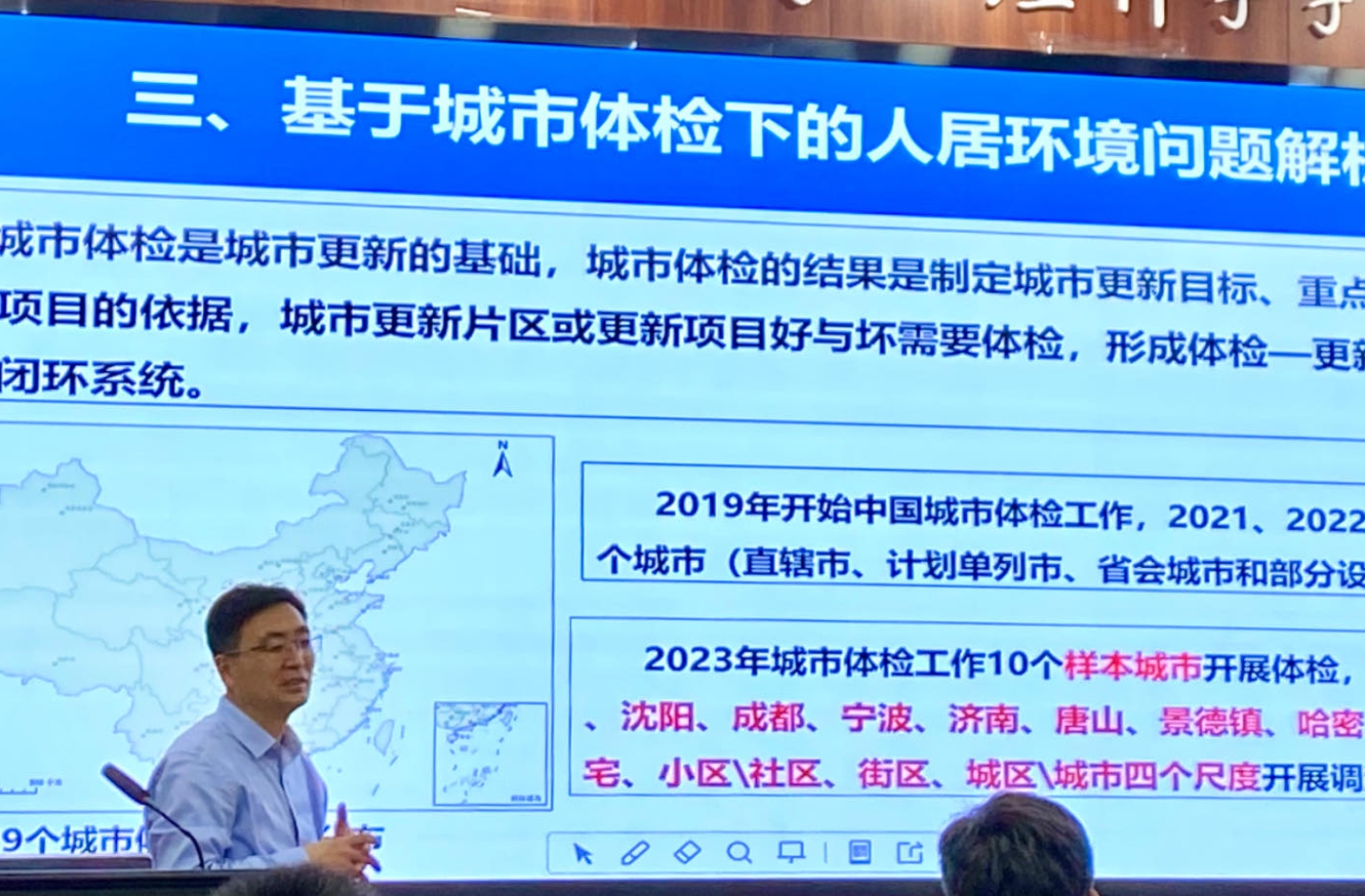 张文忠研究员首先介绍了城市人居环境建设背景,随后提出城市人居环境建设在不同尺度上的关注点,以此为基础,系统阐述了城市人居环境建设与方法。他还结合中国城市体检工作在数十个城市多尺度调查研究成果,对人居环境问题进行了深入解析,最后提出和展望了人居环境建设重点。