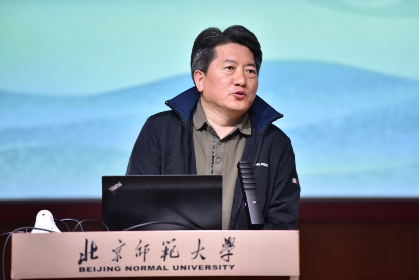李小雁教授进行了主题为“地理科学前沿研究领域:地球关键带与可持续发展”的专题讲座。他从地理学学科交叉的重要性出发,层层渐进地阐述了地理科学学科的任务、地球关键带科学特点与前沿问题以及地理学与地球关键带科学提升可持续发展研究展望。分析了地理学研究特点和研究模式演变特征,梳理了国际地球关键带研究的独特性和面临的挑战,指出地球关键带是21世纪地球科学的重要研究领域。李小雁教授借助生动的比喻以及青海湖流域关键带观测研究案例,深入浅出地引导师生认识地理科学和地球关键带交叉研究的重要性。最后,李小雁教授强调了地理学与地球关键带科学在实现联合国可持续发展目标中的重要作用,展望了第三代关键带观测站研究中人地耦合研究,推动地理学的高质量发展。