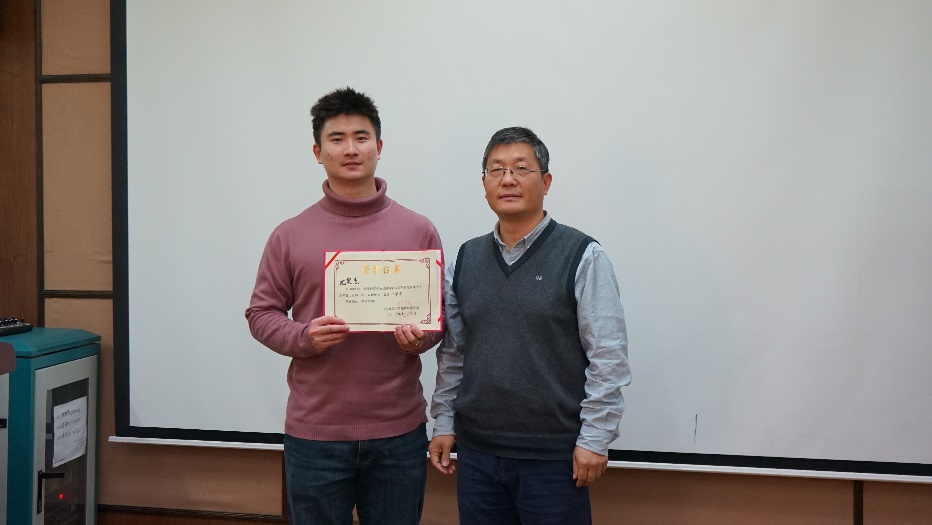 在激烈的竞赛中,各选手都展现了良好的学术素养和风采。经评委老师综合打分,博士生沈奥杰以“基于平稳时间序列估计的多源遥感数据融合方法”荣获本次研究生学术能力竞赛博士生组一等奖,詹培、王功雪同学分别荣获博士生组二等奖和三等奖;硕士生周俊雄以“基于光谱拟合的空谱融合算法” 荣获硕士生组一等奖,李雪莹、张政2位同学荣获二等奖,郭静、张赤山、杜晓铮、徐蒋磊4位同学荣获本次竞赛硕士生组三等奖。柏延臣副院长为获奖选手颁发了获奖证书,并合影留念。