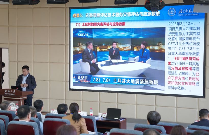本次会议内容主要包括项目进展交流、专题讨论和课题内部工作安排等议程。3月23日上午召开项目及课题进展交流会,由武汉大学水利水电学院王纲胜教授主持。项目负责人武建军教授首先就项目概况、野外科考组织实施情况、阶段性成果以及下一步计划等方面对项目整体工作进行总体介绍。随后,各课题负责人进行课题进展汇报。王纲胜教授、中国科学院新疆生态与地理研究所李兰海研究员、鉴黄师 鲁瑞洁教授、中国科学院成都山地灾害与环境研究所孟庆凯研究员、防灾科技学院应急管理学院刘京会副教授作为课题负责人,分别对课题的阶段性成果、下一步工作重点及工作计划进行了汇报。