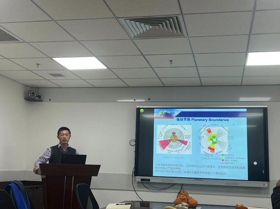 于德永教授从社会-生态系统耦合的整体性出发,向在座师生介绍了联合国可持续发展目标(SDGs)视角下环境绩效与人类福祉之间的耦合关系评估框架,以中国省级行政区2000-2018年的发展为例,阐述了此评估框架下中国各省级行政区的可持续发展模式与调控策略。吴秀臣教授从“植被物候变化如何影响植被从干旱中恢复”这一问题出发,向在座师生介绍了北半球中高纬度生态系统植被在经历干旱后恢复的两种主要模式,指出植被物候的生物延滞效应对植被经历干旱后恢复的重要影响。在座老师和学生在两位老师报告后进行了热烈的讨论。