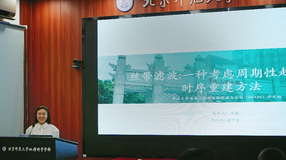 中山大学地理科学与规划学院石茜副教授在遥感科学前沿系列讲座上进行了题为"丝带滤波——一种考虑地物周期性趋势的快速时序重建方法"的研究成果分享。该讲座于2023年5月22日下午,在生地楼180会议室举行,共有50余位师生参加了学习和讨论。