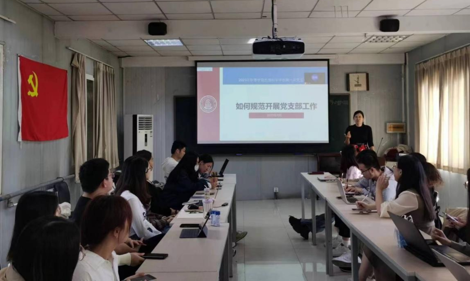 接着,党建小组负责人对党建小组进行总体介绍,包括服务对象、主管教师、日常工作、主要活动等方面,随后,党建小组各负责人对各部门的职责、人员分工、近期工作计划以及对各党支部的考核标准进行了具体介绍,并强调了各支部接下来的工作重点与注意事项。