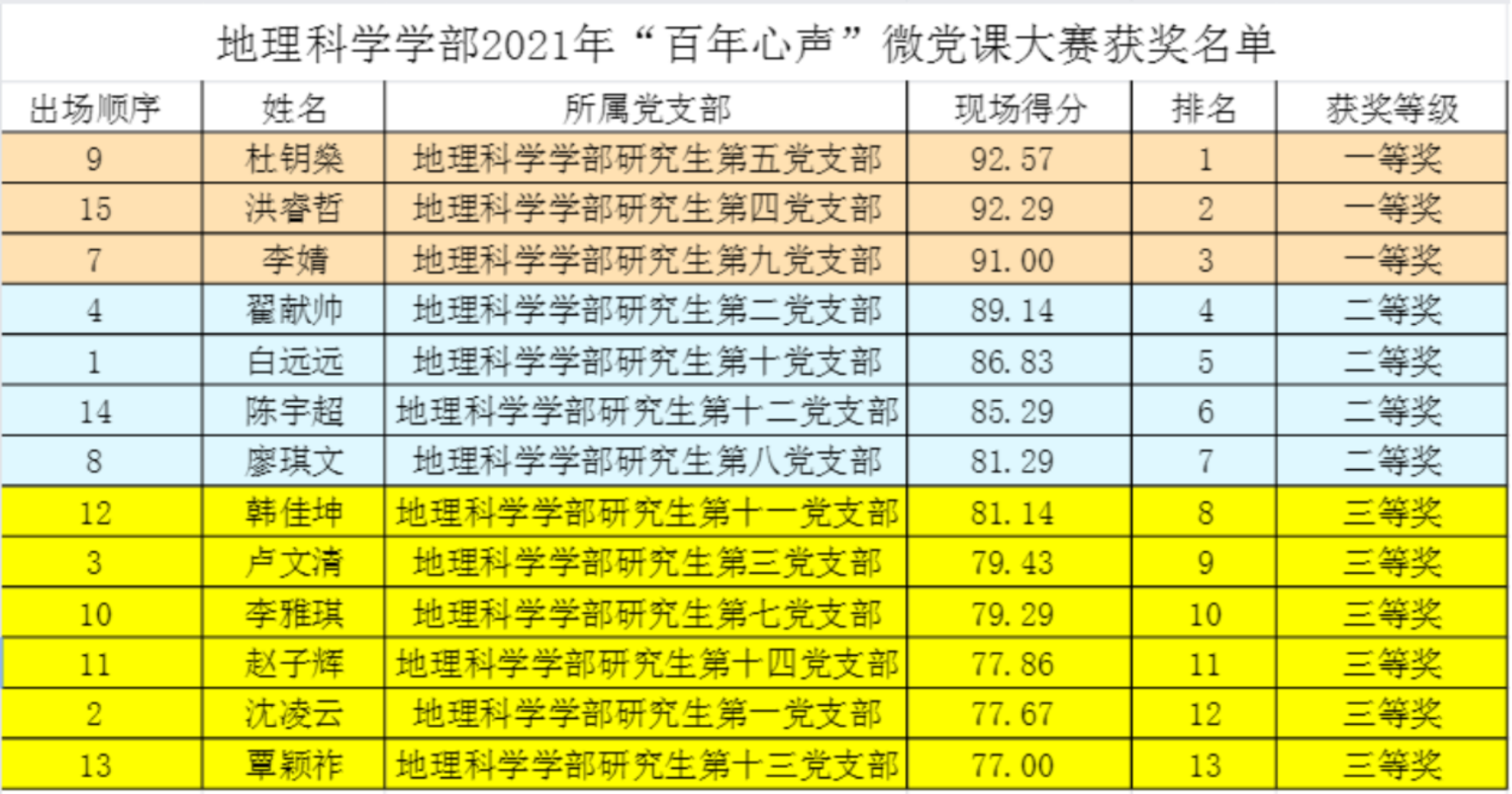 本次大赛共评选出一等奖三名、二等奖四名、三等奖六名。各评委老师分别为获奖个人进行颁奖并合影留念。