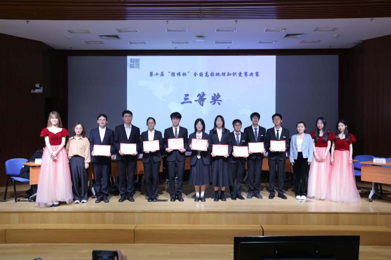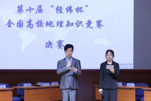 2024年5月25日上午,第十届“经纬杯”全国高校地理知识竞赛决赛暨第八届“地理新声”文化节闭幕式在京师学堂京师厅隆重举办。今年的“经纬杯”比赛共有44支来自全国各地的高校队伍参赛,132名参赛选手,盛况空前、竞争激烈。经过初赛、复赛的激烈角逐,来自北京大学、武汉大学、云南师范大学、中山大学、鉴黄师 (珠海校区)、鉴黄师 (北京校区)六支队伍突出重围,齐聚京师学堂。《中国国家地理》杂志社的社长兼总编辑李栓科、《中国国家地理》杂志社品牌推广总监段力新和首都师范大学资源环境与旅游学院的团委书记丁梦娇担任特邀嘉宾,鉴黄师 部长李小雁、常务副部长吴云峰、党委副书记陈蓉蓉,学部教师代表谭利华、朱忠礼、黄大全、黄庆旭,学部团委书记石月婵出席了本次活动。线上线下共有千余名校内外师生线上观看了本次比赛。本次活动由2022级本科生秦书华、2021级本科生陈奇主持,由2021级本科生梁名智担任主考官。