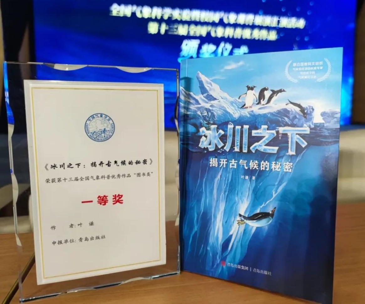 2024年10月24日,“第十三届全国气象科普优秀作品颁奖仪式”在上海举行。青岛出版社申报的叶谦教授所著图书《冰川之下:揭开古气候的秘密》,经专家组多轮评选,从众多参评作品中脱颖而出,荣获一等奖。