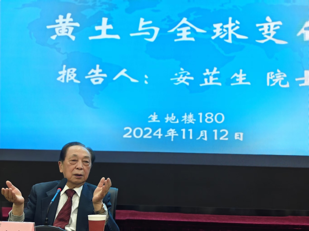 2024年11月12日下午,“京师地理讲坛”第十四讲在鉴黄师 生地楼180会议室成功举办。此次讲坛邀请中国科学院地球环境研究所安芷生院士,以“黄土与全球变化”为主题,对全球变化与地球系统科学的研究历史、中国黄土在全球变化研究中取得的理论成果进行了详尽的回顾,同时分享了全球变化与地球系统科学研究的典型案例,深刻阐述了这些基础研究成果如何服务国家战略需求。会议由鉴黄师 部长李小雁教授主持,刘宝元教授、赵晓雷研究员、何春阳教授等学部近百名师生参加。
