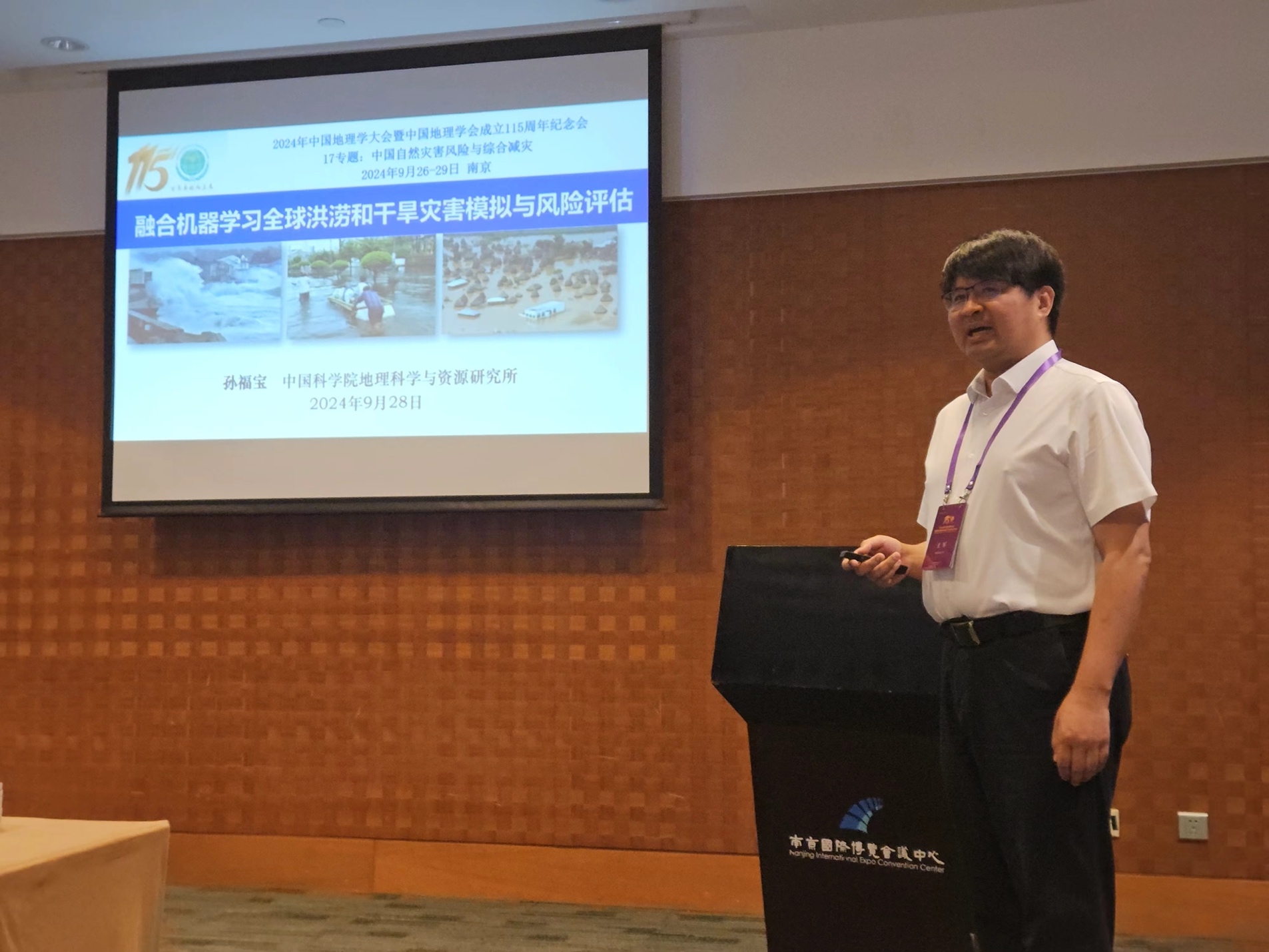孙福宝研究员作了题为“融合机器学习全球洪涝和干旱灾害模拟与风险评估”的特邀报告。报告指出在全球变化正在加剧水系统的变化,导致区域洪涝和干旱发生频率增加。准确模拟洪水和干旱状态变化对于探讨自然灾害风险评估,实现风险减量具有重大意义。报告分享了全球变化下区域洪、旱灾害模拟与风险评估方面的最新进展。报告指出,机器学习算法可在显著提高全球格点尺度洪水关键参数的模拟精度,并为资料稀缺地区提供可迁移的解决方案。未来气候变化可能显著增加全球主要流域的洪涝和干旱暴露人口,现有防洪设施的保护能力将难以满足未来减轻风险的需求。当前研究还需要评估降水稳定性,准确探讨干旱状态的变化。