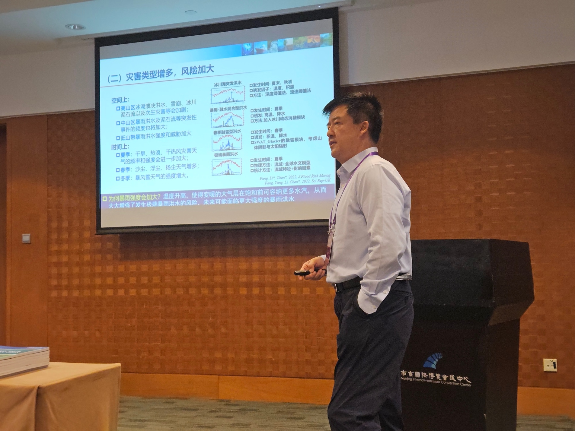 在专题报告环节,共有12所院校的专家学者进行了报告,议题集中在两个方向,一是地质灾害的监测预警、遥感识别与提取、危险性评估以及复杂孕灾环境下的暴雨-滑坡-山洪灾害链等研究,二是气候变化下复合极端事件的危险性建模及其在城市、海岸带以及农业生产等关键区域和对象的影响与风险评价。
