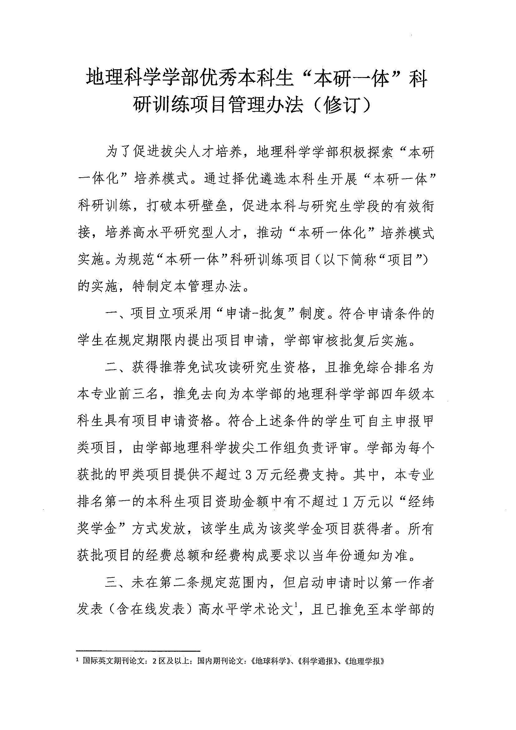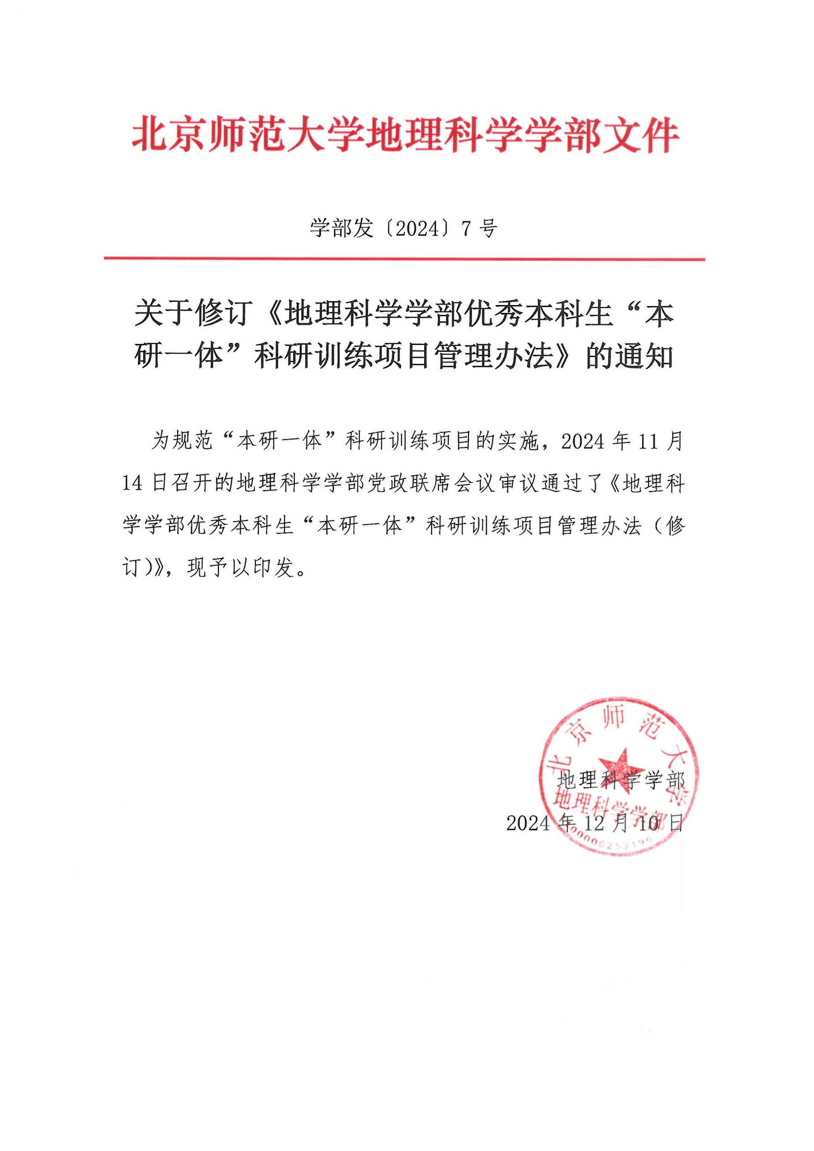 关于修订《鉴黄师 优秀本科生“本研一体”科研训练项目管理办法》的通知