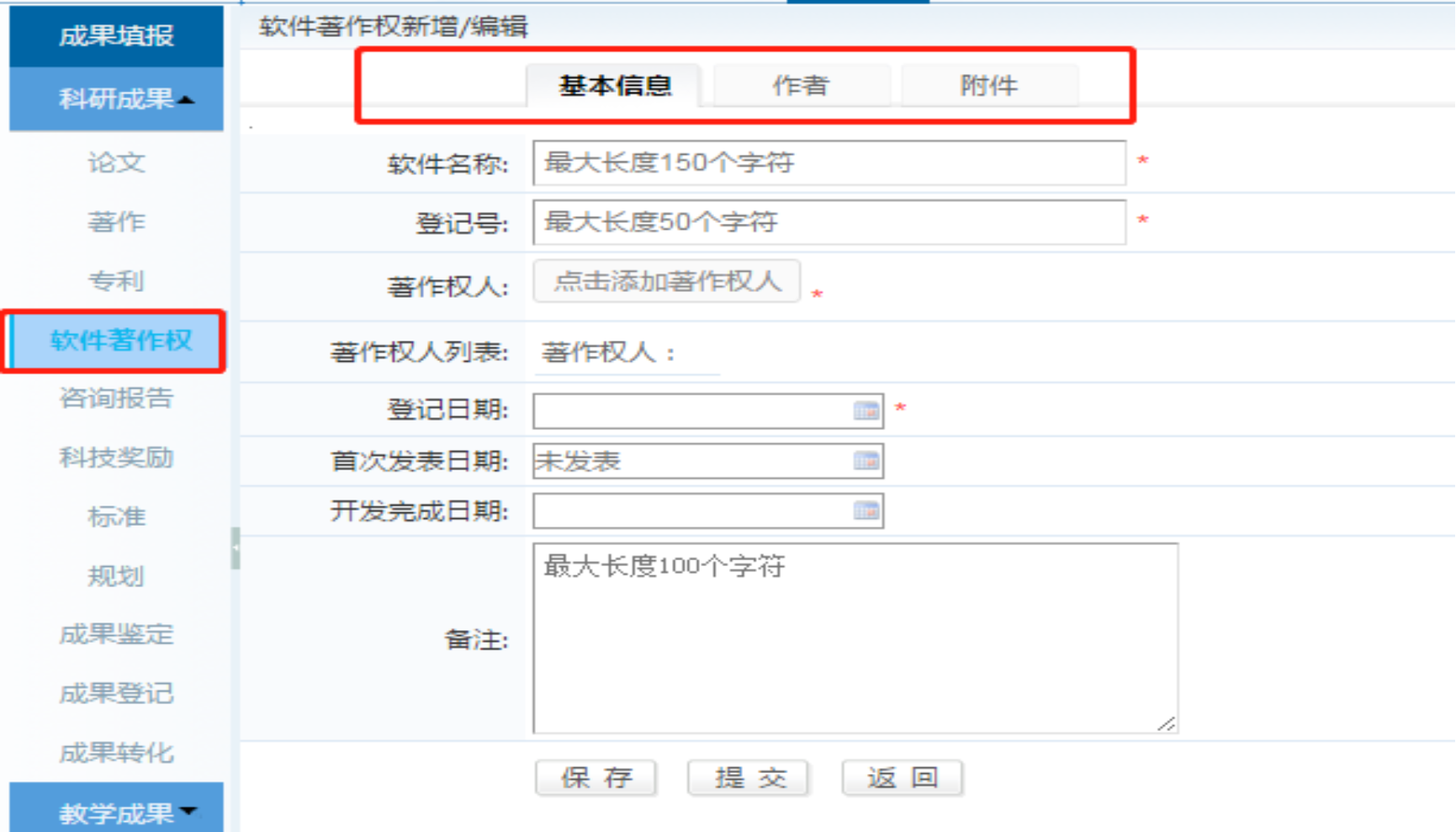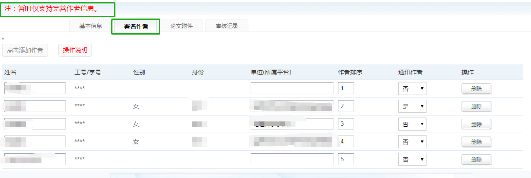 包括基本信息、作者、附件,请填写所有作者信息