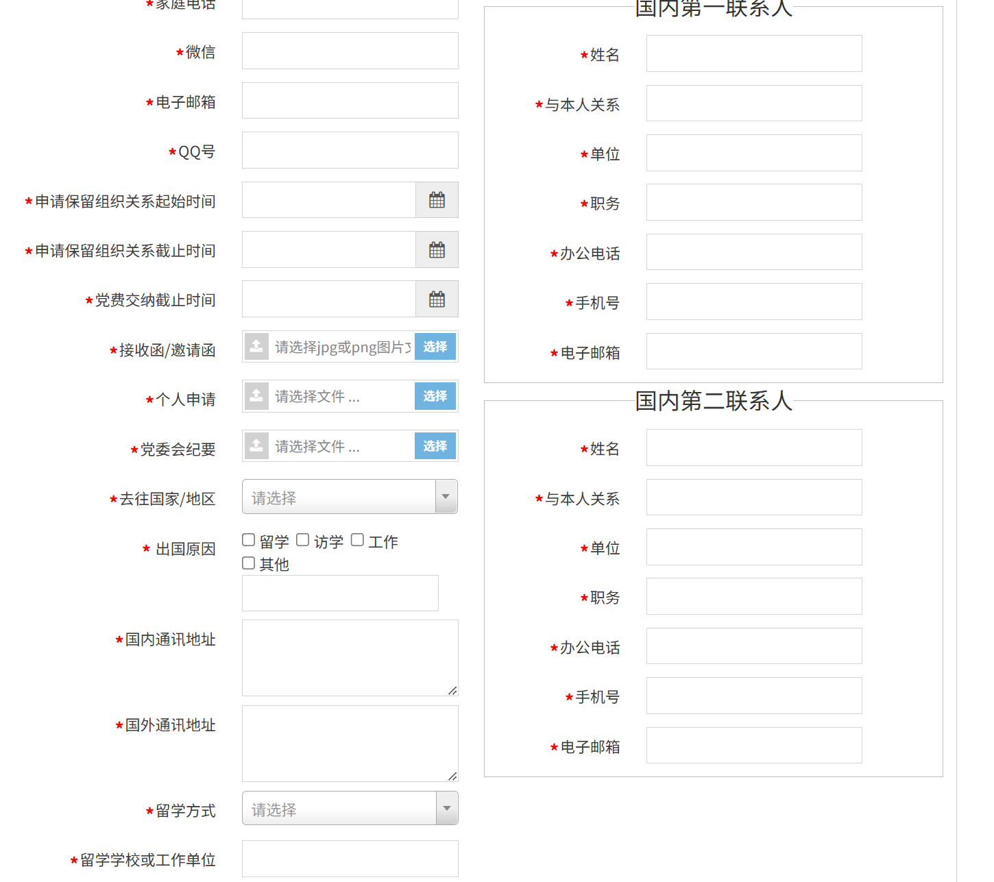 ⑨ 出国起始时间/截至时间:为预计出国和归国的时间,与申请党组织关系保留时间可能有区别