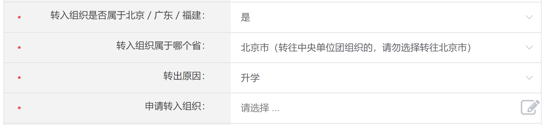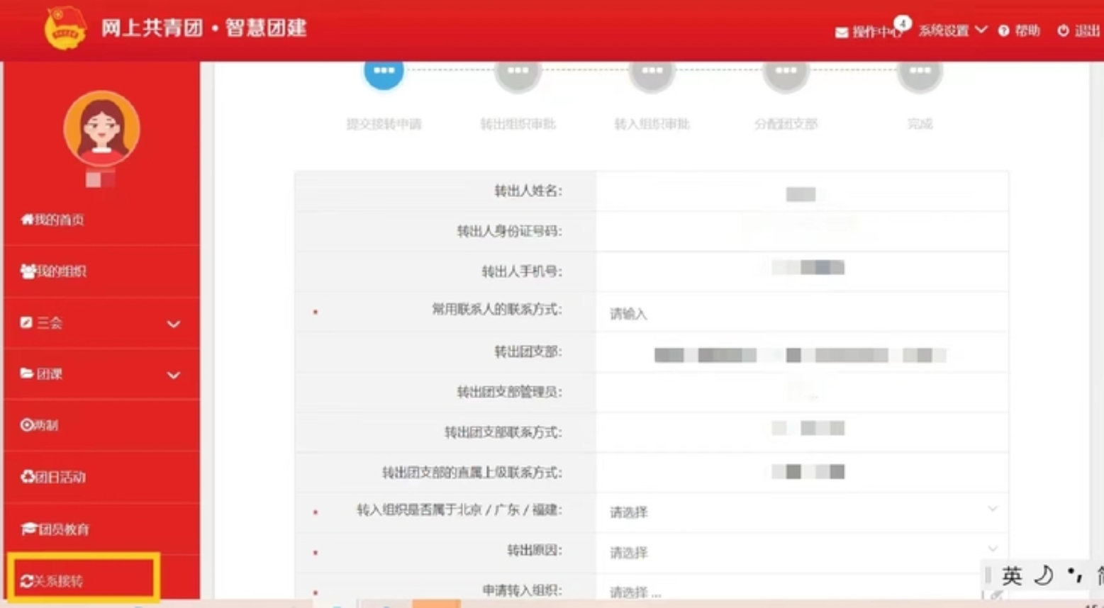 第xx团支部”后选择。注册时,请团员输入真实准确的姓名和身份证号,否则会影响团组织关系的成功转接。所在地选择海淀区-北太平庄街道办事处-师范大学社区居委会,团组织需输入新生团支部全称,本科生最高学历为“高中”,硕士生最高学历为“本科”。 5. 等待团组织在系统上进行转入审核。团组织通过后,团员手机端显示“所属组织→我的团组织→中国共产主义青年团鉴黄师