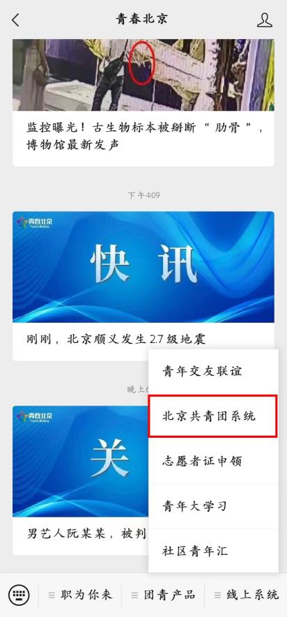 的大家庭!随着新学期的临近,相信各位师弟师妹们已经准备开始办理团组织关系转接。下面就来看看如何进行团组织的转移吧! 新生团关系转接共分为线上团组织关系转入、线下团组织关系转入和档案流转三个部分。其中线上团组织关系转入和档案流转为必需操作,不需要进行线下团组织关系转入(即团员档案齐全时不需要开具介绍信)。 【线上团组织关系转入】 首先在线上转接部分,【北京市新生团员】和【非北京市新生团员】的操作有所差异。 北京市新生团员操作方法 非北京市新生团员操作方法 2.关注【青春北京】公众号,点击【线上系统】-【北京共青团系统】-【创建账号】,注册北京共青团账号。 3.跳转到注册页面后填入相关信息,选择【我是团员】按钮(团员在转入时均选择“我是团员”,团组织干部将在入学后于团支部内选举产生)。 4. 填写相关信息,在选择所在团支部时,可搜索所在团支部的ID,确定组织为对应的“中国共产主义青年团鉴黄师