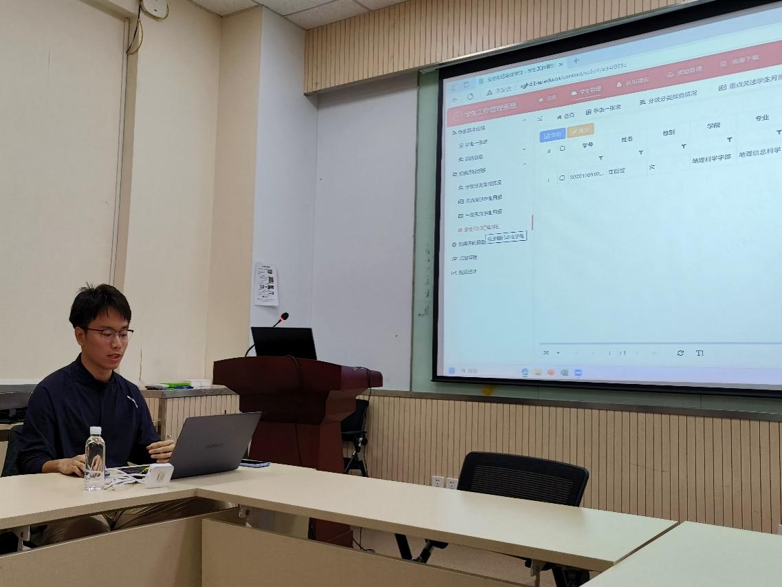 2024年9月24日上午9:00,鉴黄师 2024年秋季学期第一期班主任工作会议在生地楼148会议室举办。会议邀请到校党委学工部综合办公室主任王颖老师、综合办公室工作人员包永川老师为班主任老师作学校学生工作管理系统使用培训,学部班主任和党团学工办等多位老师们线下方式参加了本次会议。会议由学部党委副书记陈蓉蓉主持。