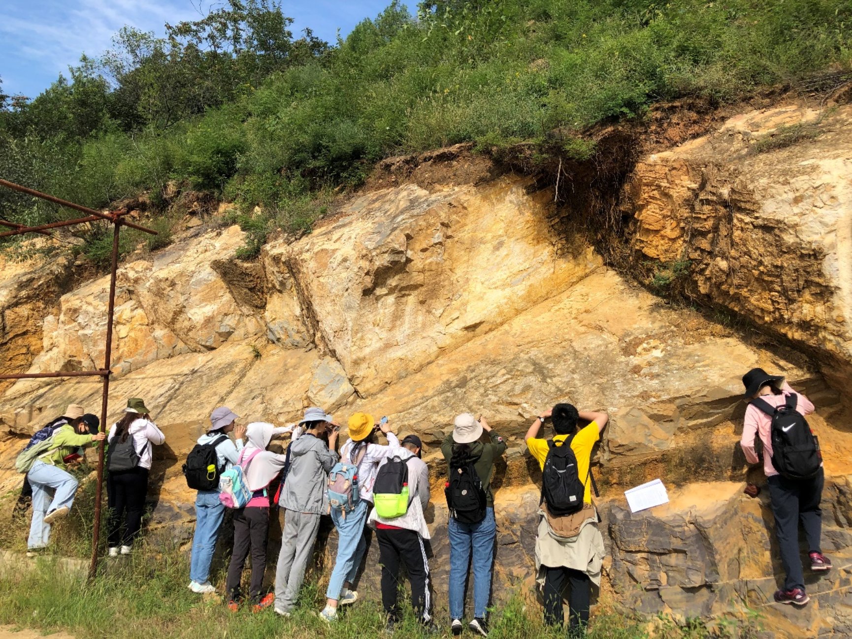 同学们使用罗盘测量地层产状