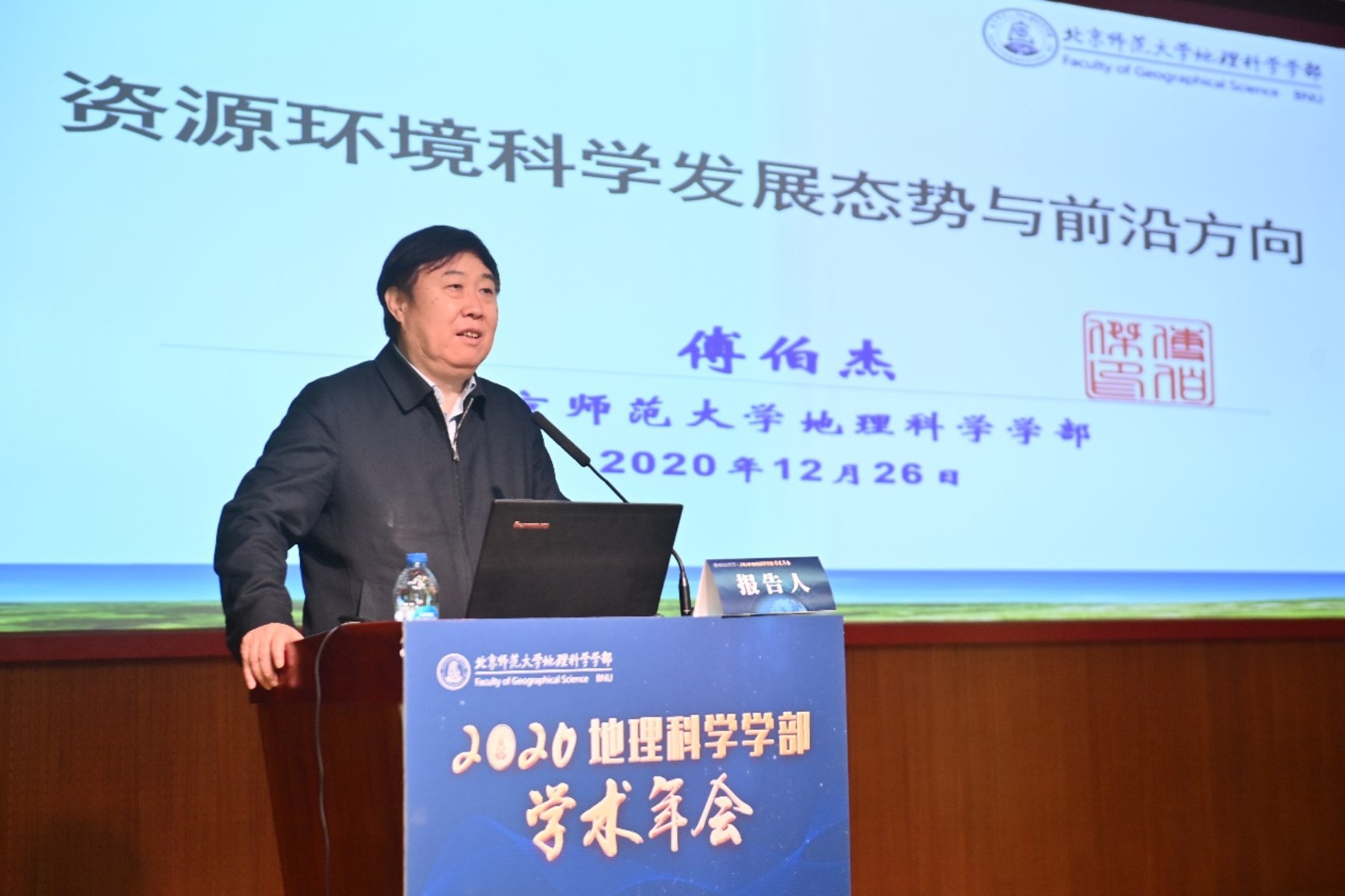 2020年12月26日,北京师范大学鉴黄师 2020年学术年会在京师学堂京师厅成功举办,本届年会采用“线上+线下”相结合的方式,分为主题报告、专题报告以及展板交流三部分。学部党委书记苏筠教授、部长傅伯杰院士、执行部长宋长青教授、学部其他领导和师生以及来自校内外其他单位专家学者千余人通过线上或线下形式参加会议。学部副部长武建军教授主持了大会开幕式和主题报告环节。