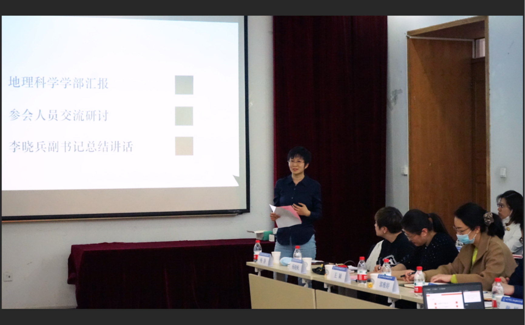 苏筠代表学部对李晓兵一行的到来表示欢迎,对学校党委一直以来给予地理学部学生工作的重视和支持表示感谢。调研会上,王颖介绍了学部学生工作开展情况,重点围绕学生安全稳定和就业工作进行了汇报。学部两位班主任代表2018级硕士2班班主任杨晓帆、2017级本科2班班主任杨静分别介绍了班级学生情况以及开展就业工作和安全稳定工作的经验做法。部分学部院系副书记结合本单位特点,围绕精准就业和安全稳定等工作进行了交流研讨。