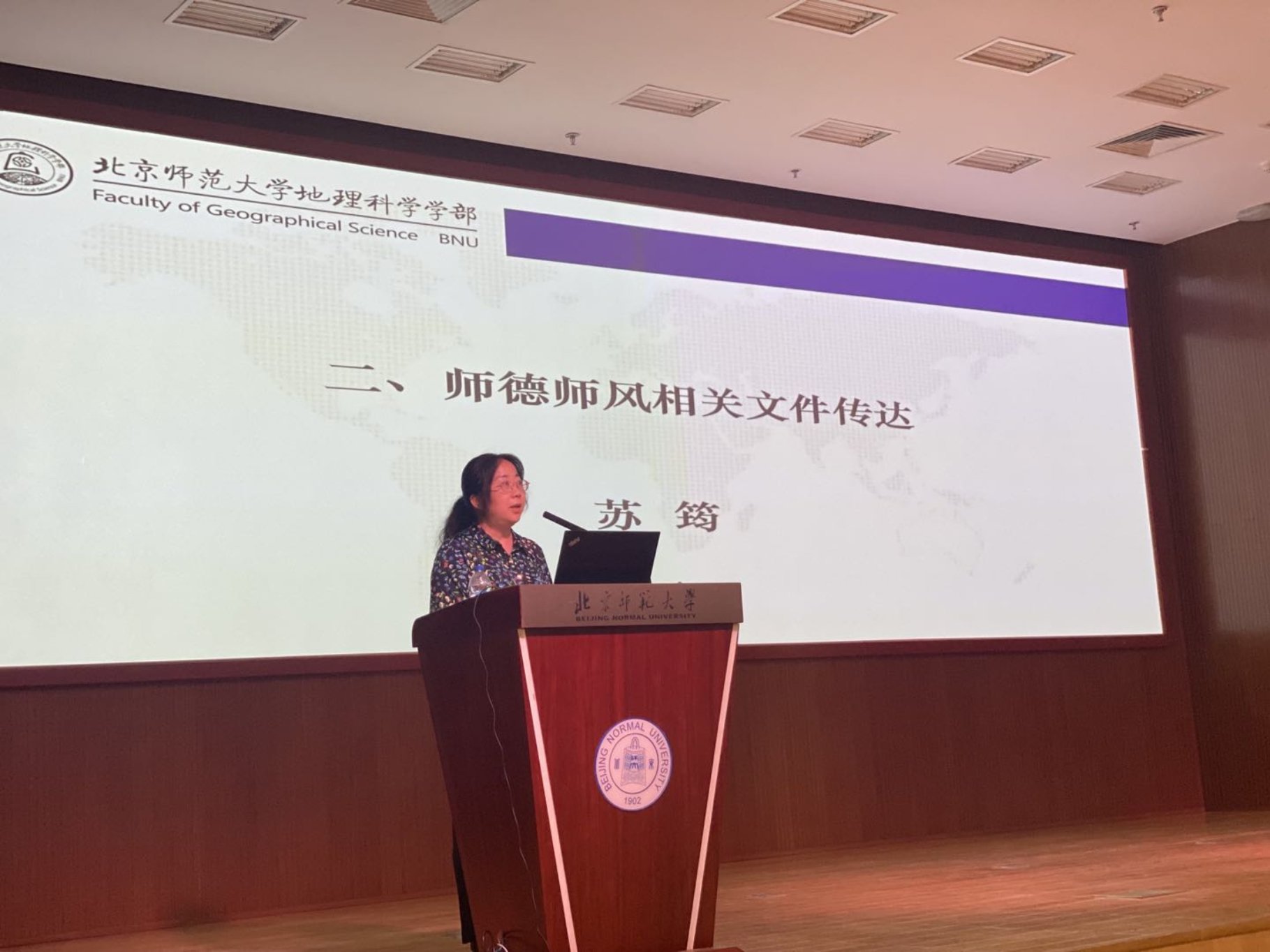 大会第二项,由苏筠书记传达学校近期下发的师德师风系列文件精神。逐条传达了师德师风行为的负面清单,对违反相关问题的处理方式和相关程序进行了说明,希望学部教职工牢固树立底线意识、不碰红线,加强师德师风个人修养。
