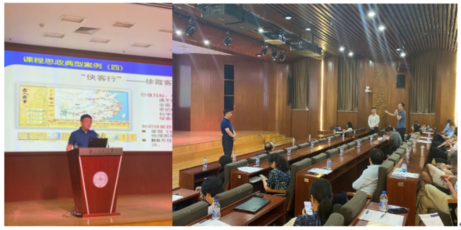 大会第一项,邀请南京师范大学地理科学学院汤国安教授以“‘地理信息系统原理’课程建设的探索实践”为主题作了教育教学方面的经验分享报告。汤教授从课程的建设背景与成效、教学改革举措等方面进行了讲解,阐述了“3点驱动-3线课堂-3类方法”的教学模式与方法,并重点就课程思政、大学生研究型思维培养通过多个具体案例进行了详细阐释。报告指出高校应以课程建设为重点,将其作为系统工程进行科学的顶层设计,有序分层推进;高校要从专业育人提升到全面育人,科研、教学“两手抓、两手硬”,互为反哺。报告完毕,学部教师与汤教授就学生培养机制、授课形式等方面进行了交流与探讨。