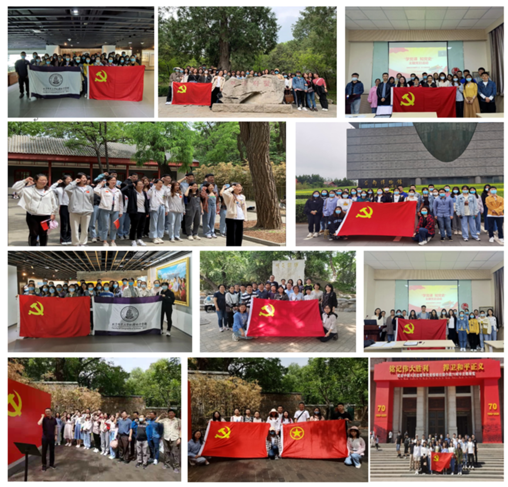 学部党委继续发扬党建带团建、群众共建的优良传统,开展多项学习教育活动。3~4月,学部党委积极组织离退休教师党员、师生党支部、团支部的成员共计20余人在校内、校外开展多次访谈活动,并向学校有关部门投稿5篇访谈征文,最终《鲐背老人的入党初心与使命——邬翊光先生访谈录》已进入教育部“读懂中国”系列活动的评审进程。5月20日,学部党委组织教工党支部与工会小组、白鸽青年志愿者协会联合共建,寻访校园内三一八纪念碑、五四纪念碑、先师鲁迅、时代先声等22处人文景观,由校团委白鸽青年志愿者协会讲解员带领,领略师大风骨,记录师大风韵,感悟时代精神;在重走红色足迹的过程中,帮助师生了解党史、了解历史上的师大人,进一步激发对党的敬意和对校园的热爱。6月18日,在学部党委的号召下,学部“大地征途”二级党校组织师生党员及群众参观被誉为“全国青少年爱国主义教育示范基地”的焦庄户地道遗址纪念馆。通过实地参观地道战遗址等方式,重温革命历史、沐浴革命精神、感悟红色文化、汲取磅礴力量。参加活动的师生党员共同在党旗下重温了入党誓词,铿锵恢宏的誓词,强烈震撼着在场的每一位党员,坚定了党员同志们的入党使命以及奋斗初心,也同时鼓舞着参加活动的共青团员、群众早日加入到党组织中来。