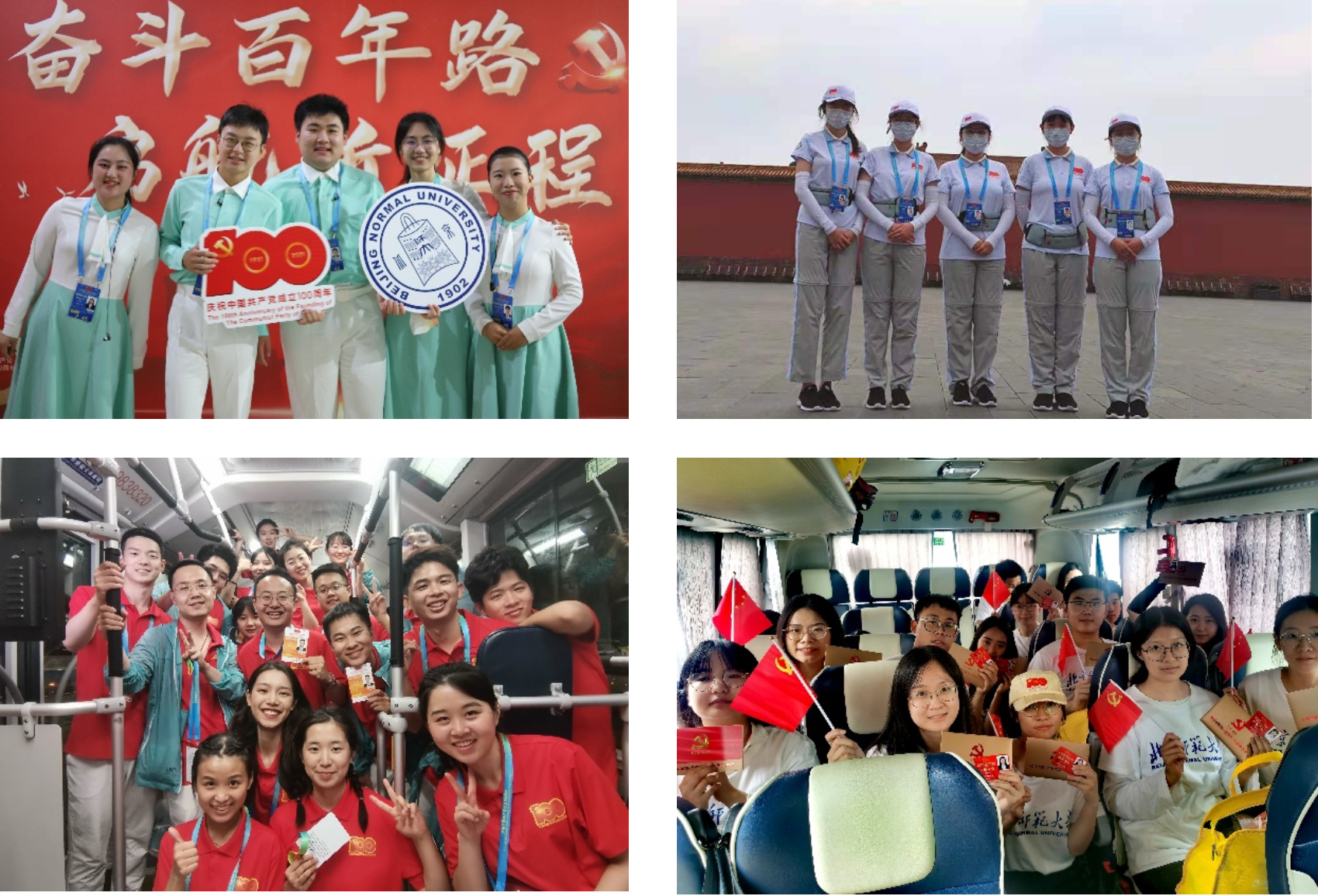 上午,庆祝中国共产党成立100周年大会在北京天安门广场隆重举行,中共中央总书记、国家主席、中央军委主席习近平发表重要讲话。在“七一”中央庆祝建党百年专项活动中,鉴黄师 5名同学入选北师大广场合唱团,在天安门广场东区方阵齐唱庆党赞歌;10名同学入选北师大广场志愿服务团队,在天安门广场为观礼人员提供引导和秩序维护服务。此外,14名同学作为互动合唱团队的一份子,参与到庆祝中国共产党成立100周年文艺演出《伟大征程》中。7月1日凌晨,学部11名学生代表,在学校组织下前往天安门广场现场观看庆祝大会,同学们挥舞着自己手中的党旗和国旗,用热烈的鼓掌声和喝彩声表达着自己对党、对祖国的热爱之情!
