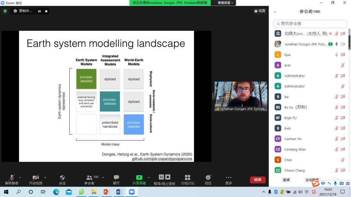 2021年12月18-19日,由地表过程与资源生态国家重点实验室主办的第四届人-地系统动力学模型模拟国际研讨会通过线上形式成功召开。