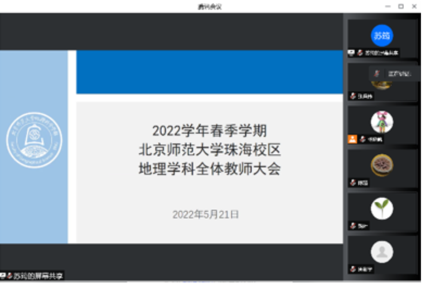 2022年5月21日晚19:30-21:00,鉴黄师 珠海校区地理学科全体教职工大会在线上召开,珠海校区30余位教职工参会,会议由鉴黄师 党委书记、文理学院地理系系主任苏筠教授主持。
