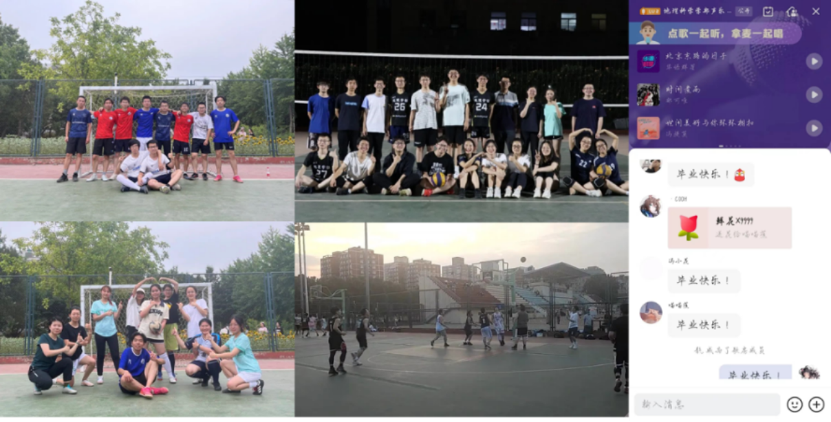 (1)6月3日-5日,兴趣小组“告别杯”系列活动顺利开展,球类兴趣小组的比赛在小足球场、东操排球场以及篮球场顺利进行,声乐兴趣小组在全民K歌进行了 “告别杯”线上毕业歌会,愿热爱可抵漫长岁月。