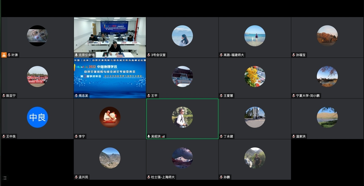 本届学术年会设置了6个教师平行分会场及3个研究生平行分会场。在分会场报告阶段,各分会场主题多样、视角各异,分别就当前热点问题如“灾害风险与应急管理”、“城市灾害与韧性社会”进行报告。在气候变化的背景下,气候变化带来的风险及归因,以及对金融业带来的冲击与风险在分会场中也被充分讨论。此外,考虑到区域差异性,对重点地区,如青藏高原地区、海岸带地区的特有风险的时空特征进行评价,并充分讨论灾害监测与预测方法及防御范式。针对日益增多的跨境灾害以国际风险,在分会场中也进行专题研讨。研究生平行分会场进行了优秀学术报告评选活动。经过长达3小时的角逐,最终由鉴黄师 刘轶青、华东师范大学单薪蒙、福建师范大学徐婉灵和鉴黄师 战宁获得优胜。