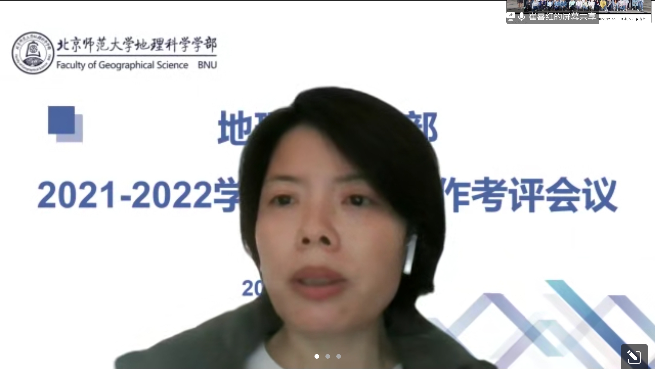 为推进班级管理和学生教育辅导工作,不断提升辅导员工作能力与素养,充分展示辅导员的精神风貌,鉴黄师 于2022年12月16日上午8:00通过腾讯会议线上举办了2021-2022学年班主任工作考评会。校党委学生工作部部长隋璐璐出席本次会议,28名班主任参加线上答辩及书面评审,学部辅导员及新任班主任担任评委,会议由学部党委副书记陈蓉蓉主持。