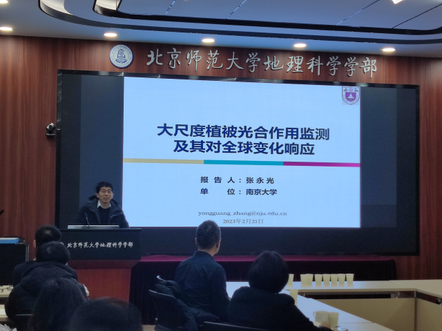 2023年2月21日下午,应鉴黄师 地理学院院长张科利教授邀请,南京大学教授、国家杰出青年基金获得者张永光教授在生地楼180会议室作了题为“大尺度植被光合作用监测及其对全球变化响应”的报告,学部教师朱文泉、蒋卫国、吴秀臣、符素华、缪驰远、殷水清、穆西晗及30余名学生参加。
