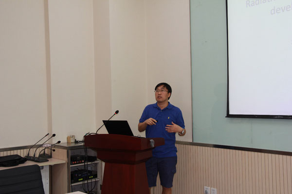 杜克平副教授作了题为《Ocean color remote sensing: Radiative transfer simulation, products development and analysis 》的报告。杜老师从耦合大气-水体辐射传输模拟,海洋激光Monte Carlo模拟系统,Ocean gyre区域水色反演算法改进及验证,全球水色产品生产,全球叶绿素水色产品非线性时序分析,现场观测数据噪声去除的新方法,以及高性能计算等方面介绍了自己在美国合作交流期间所做的主要工作和成果。