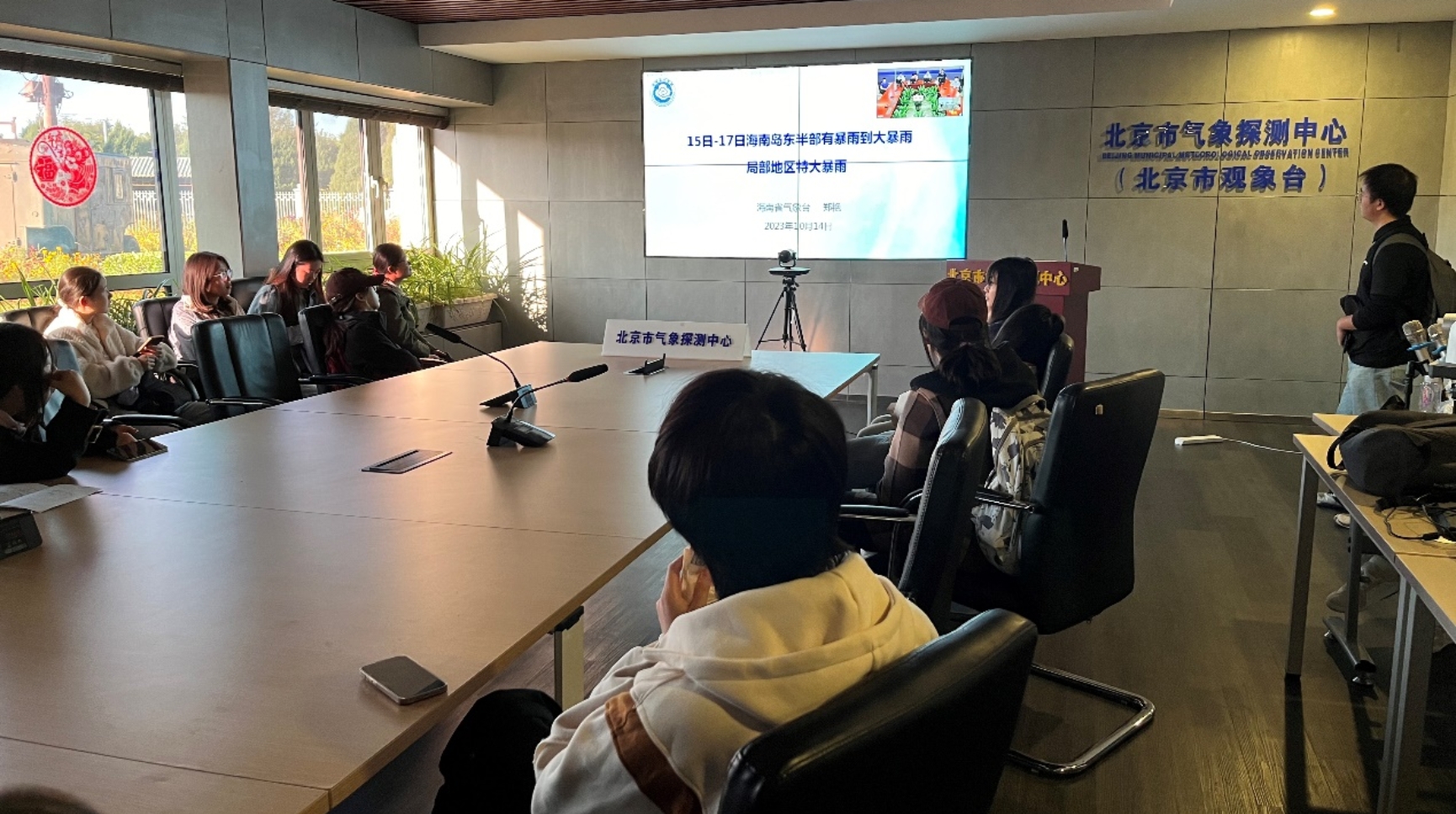 北京时间8点整每日全国天气会商开始,同学们旁听了未来三天全国天气预报和专家们对15-17日海南暴雨的讨论,也了解到了观测-预报-气象公众服务之间的紧密联系。