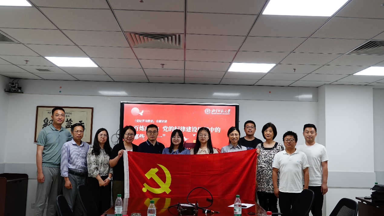 为扎实推进党纪学习教育,提升广大教师党员学党纪守党纪的自觉性,5月30日下午,学部生态水文水资源与中药资源党支部、生物地理与资源生态党支部和土地资源与区域发展党支部共同邀请了鉴黄师 求索学社宣讲团在京师科技大厦B座1226会议室为三个支部的党员老师开展题为 “跳出历史周期率的第二个答案”和“百炼成钢:党的纪律建设历程中的那些第一” 的党纪学习教育专题宣讲活动。