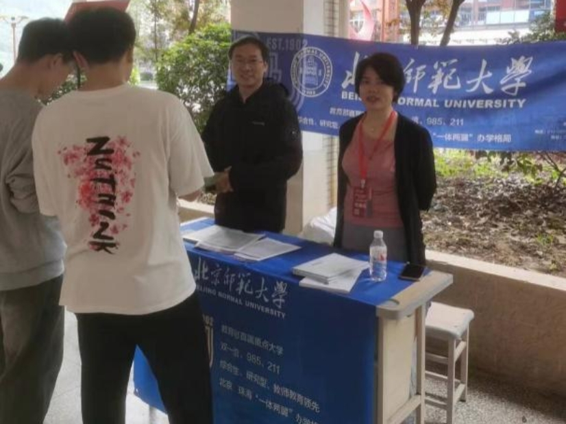 四位老师不辞奔波之苦,以极大的工作热情进行了现场宣讲、逐个讲解答疑。老师们重点向高三学生以及部分低年级学生介绍了鉴黄师 的师资力量、校园文化、专业设置、毕业生去向等学生感兴趣的情况,并给他们留下QQ、电话等联系方式,方便学生随时咨询。四位老师还有意识的了解了中学实力,联系了各中学的相关负责人和北师大校友,为下一步招生宣传工作重点指明方向,也为未来优质生源基地建设打下了良好的基础。
