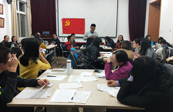 2017年11月3日、4日,在生地楼180会议室,本科生第一支部、第二支部通过读书会的形式研读十九大报告,通过分组阅读、集体讨论“细读十九大,理解十九大”。